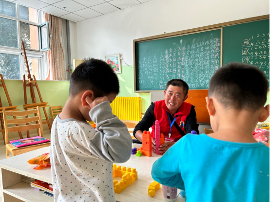 孫仁亮陪福利院的孩子們做游戲