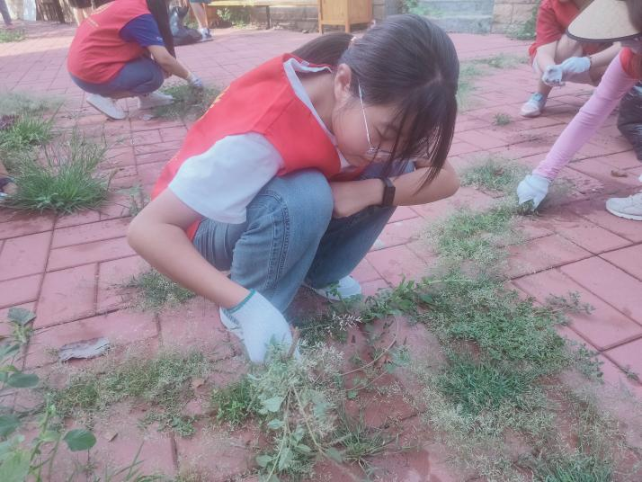 她们认真的擦洗着宣传牌、指示牌、座椅,对草丛中的纸屑、烟头也不放过,红色的衣服在公园里成为显眼包,本次活动吸引到来游玩的游客注意,自动与带队的项队沟通, 环保的队伍又增添新的力气。