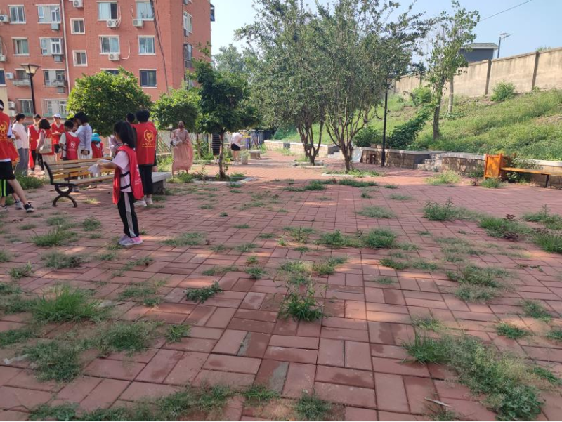 橄榄绿慈悲义工服务队于在丰台区槐新公园展开环保活动。夏天的依然闷热,义工老师坚持参与例行活动。义工老师穿着义工马甲,拿着事先准备好的夹子、抹布及废物袋。