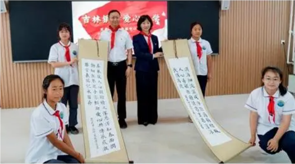 活动中,市青少年开展基金会向银行分行颁发了2023年度期望工程团体贡献奖证书和捐献证书,分行行长上台承受了这一荣誉。学生们为表达对银行分行的感谢,回赠了自己精心预备的书法著作和手工著作。